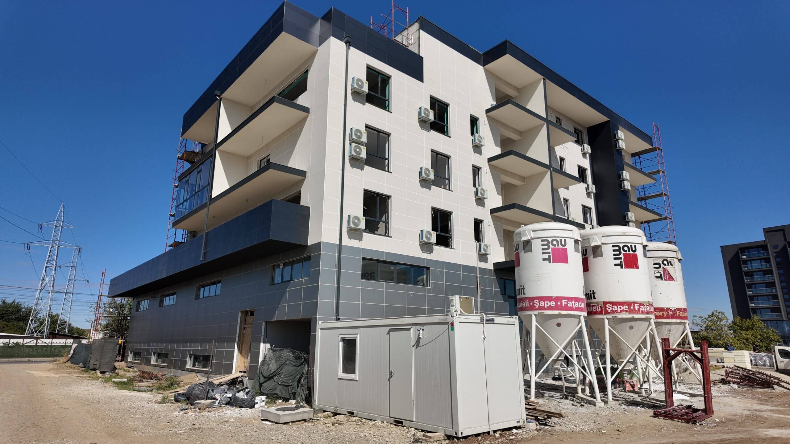 În Dobroești, județul Ilfov, am realizat un proiect complex de izolare pentru un imobil mixt, compus din spațiu comercial pe două nivele și patru etaje rezidențiale.